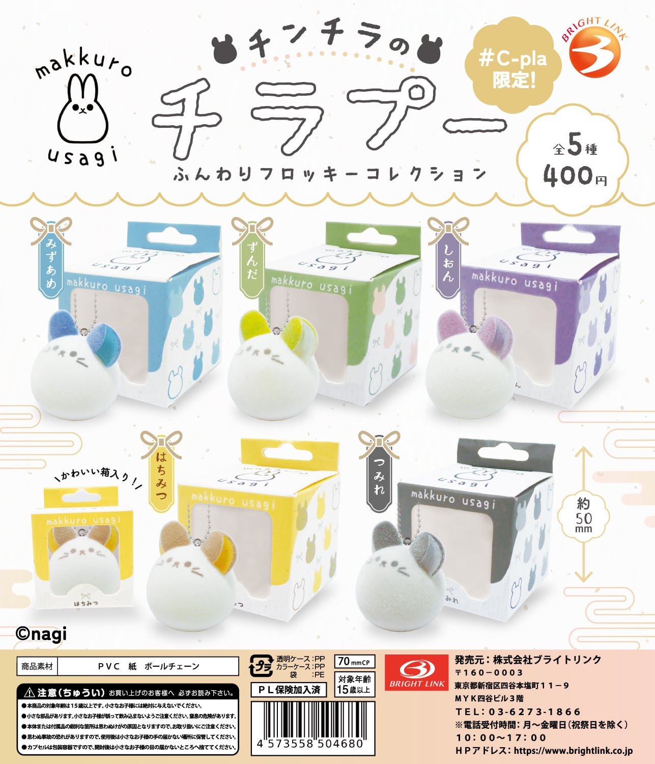 【数量限定オンライン販売】 イベントやPOPUPで販売しているアクリルキーホルダーを数量限定で販売させていただきます。 基本的には前述したようにイベントやPOPUP限定で販売している作品になりますので、オンラインでの販売分は数量を限定しております。 遠方にお住まいなどの理由でイベントやPOPUPに行ける機会が無い方には是非、この機会をご利用いただければと思います。 ※複数店舗で販売しているため多少の在庫の移動を行うことがございます。 ご了承ください。 --------------- ◾️さくらチラプー チンチラのチラプーというキャラクターです。 こちらのチラプーはクリーム色の体にさくらをイメージしたピンク色のお耳を持つ愛らしいカラーの子です。 --------------- 1点ずつオリジナル台紙にて包装した状態で発送致します。 【サイズ】 本体部分 約縦4cm×横4cm 【素材】 透明アクリル 【印刷に関して】 ・片面印刷 ・裏面は白 鋭利なものが印刷面に当たると印刷が剥がれる・キズが生じる等の恐れがあります。また、負荷の強い状態で使用を続けると欠け・割れ等の破損が生じる恐れがあります。 【発送方法】 ヤマト運輸のネコポスでの発送になります。 ポストに直接投函される配送方法です。 複数の作品を別々にご購入、決済いただいた場合の同梱対応は致しかねます。 ご購入予定の作品を全てカートに入れ終わってから決済いただきますようにお願い致します。 【注意事項】 ⚫︎撮影環境、お使いの端末や閲覧環境により、 写真と実物の色味や質感、サイズ感が多少異なって見えることがございます。 ⚫︎こちらの不備以外での返品、交換には 対応しておりません。 最後まで読んでいただき、ありがとうございました。 気になる点がございましたらお気軽にご質問下さい。