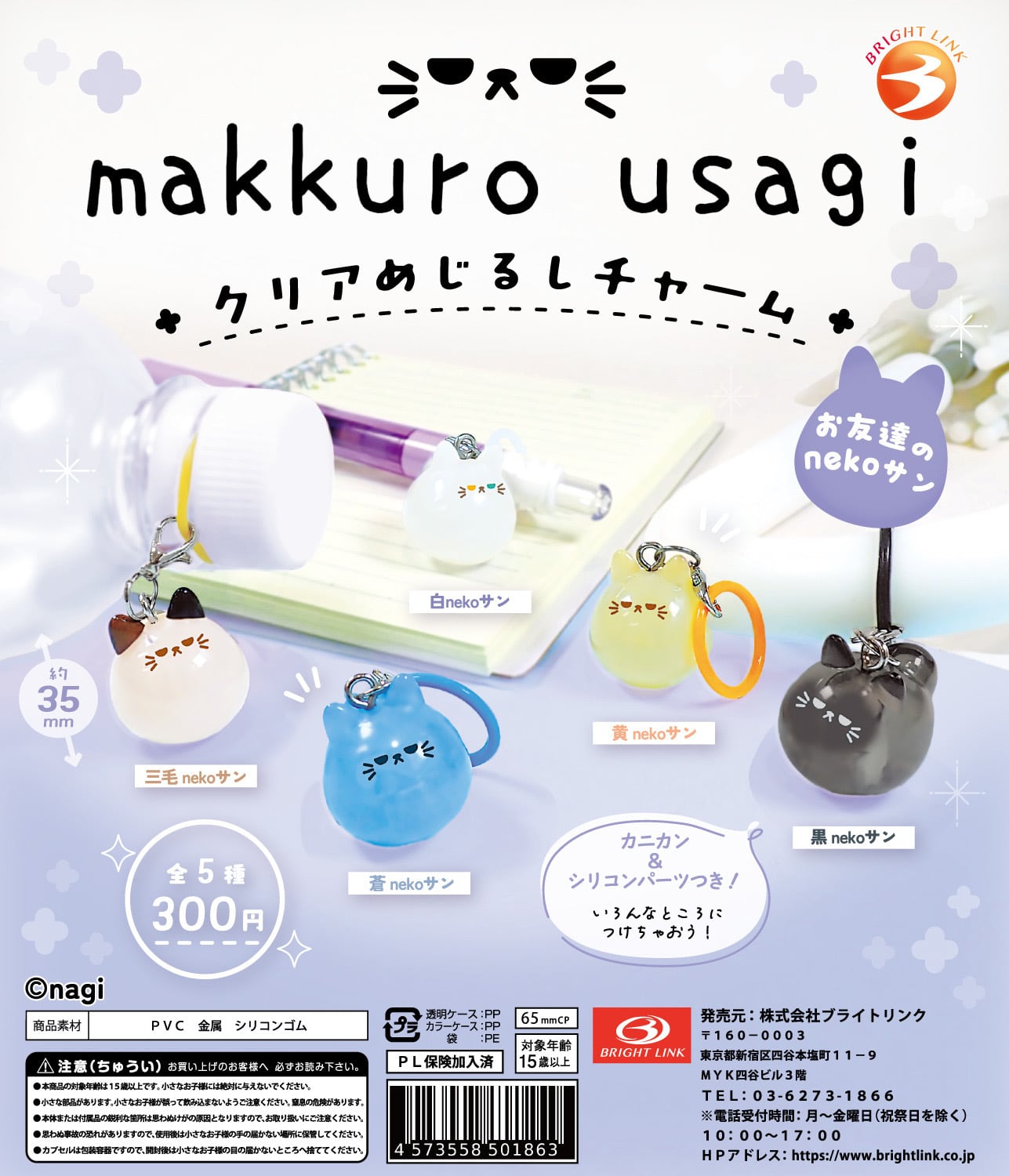 【 受注制作につき納期最大5日程度 】 イベントやPOPUPで販売しているステッカー。 今回はガチャガチャにもなった5カラーのnekoサンたちを、5枚セットにして販売させていただきます。 遠方にお住まいなどの理由でイベントやPOPUPに行ける機会が無い方には是非、この機会をご利用いただければと思います。 【サイズ】 縦約5cm×横約5.5cm 【仕様】 耐水・退光 【素材】 保護用フィルム 厚み0.07mm 印刷用フィルム 厚み0.10mm 【発送方法】 ヤマト運輸のネコポスでの発送になります。 ポストに直接投函される配送方法です。 時間指定はできません。 複数の作品を別々にご購入、決済いただいた場合の同梱対応は致しかねます。 ご購入予定の作品を全てカートに入れ終わってから決済いただきますようにお願い致します。 【注意事項】 ⚫︎湿度が80℃以上になる場所には貼らないでください。 ⚫︎車に貼る場合は剥がすと日焼けによる取り付け跡が残る場合があります。 ⚫︎また塗装面に貼り付けたものを剥がす場合に塗装も剥がれる恐れがあります。 ⚫︎被着体の素材によっては綺麗に剥がせないことがあります。 ⚫︎優れた耐水性を備えていますが、長時間水に浸した場合、断面から水が侵入して滲む恐れがあります。 ⚫︎撮影環境、お使いの端末や閲覧環境により、 写真と実物の色味や質感、サイズ感が多少異なって見えることがございます。 ⚫︎こちらの不備以外での返品、交換には 対応しておりません。 最後まで読んでいただき、ありがとうございました。 気になる点がございましたらお気軽にご質問下さい。